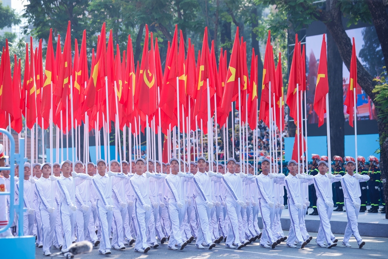 Khối cờ Đảng, cờ Tổ quốc tại Lễ diễu binh, diễu hành kỷ niệm 50 năm Ngày Giải phóng miền nam, thống nhất đất nước (30/4/1975-30/4/2025), tượng trưng cho lý tưởng, niềm tin chiến thắng; bản lĩnh, trí tuệ lãnh đạo của Đảng Cộng sản Việt Nam - Ảnh: VGP/Nhật Bắc
