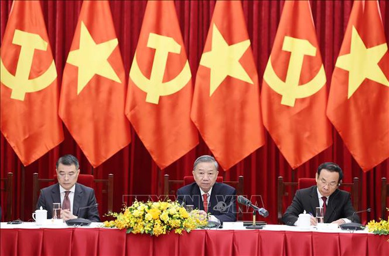 Tổng Bí thư Tô Lâm cùng các đồng chí Lãnh đạo Đảng chủ trì buổi tiếp - Ảnh: TTXVN