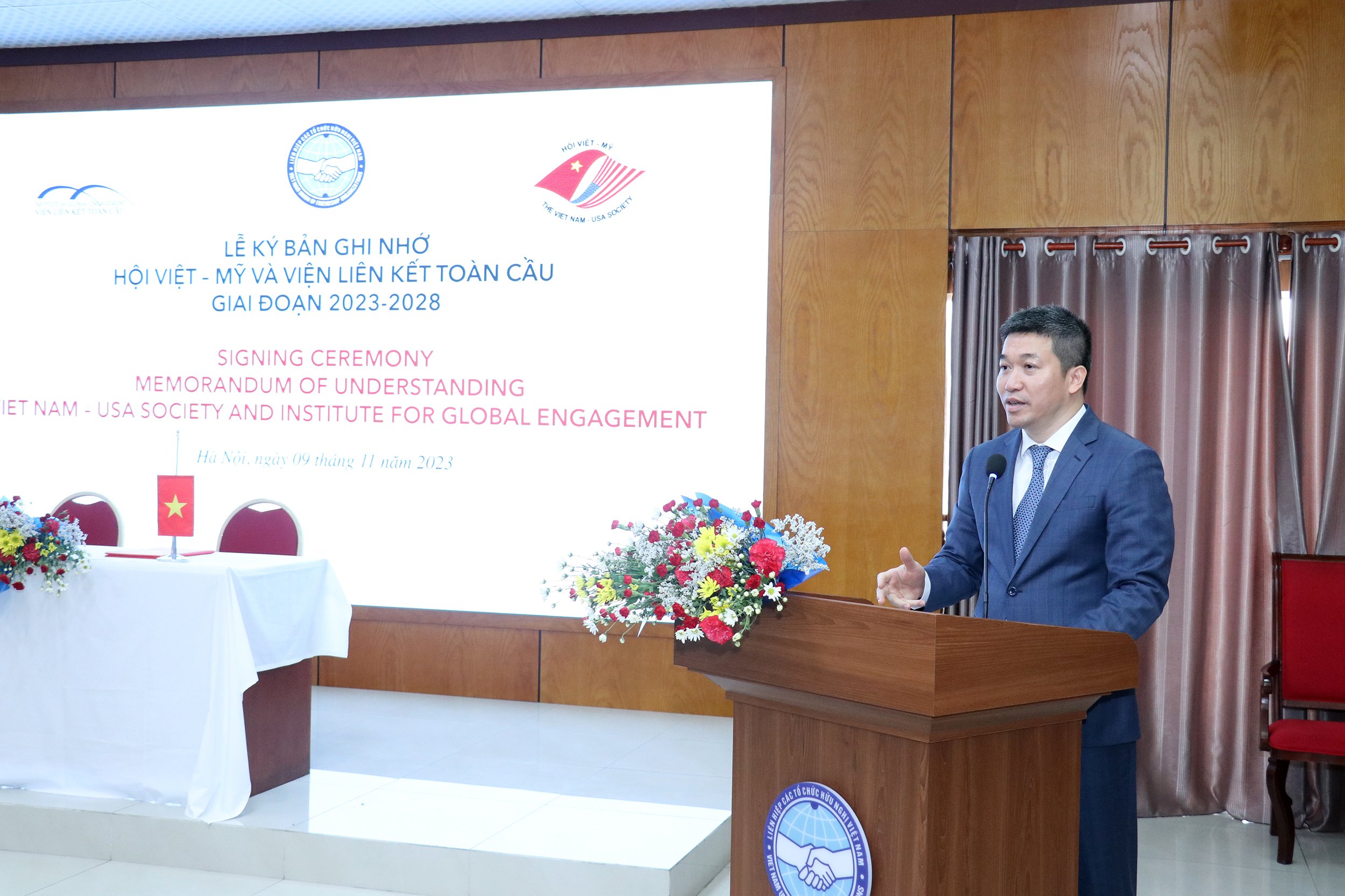 On November 9th, 2023, the Signing ceremony of the Memorandum of Understanding between the Vietnam - USA Society and the Institute of Global Engagement (IGE) for the 2023 - 2028 period was successfully conducted. The ceremony drew the participation of esteemed leaders of the Vietnam - USA Society, the Institute of Global Engagement (IGE), the Vietnam Union of Friendship Organizations, representatives of the US Embassy in Vietnam, as well as distinguished associate professors and scholars from various organizations and agencies.