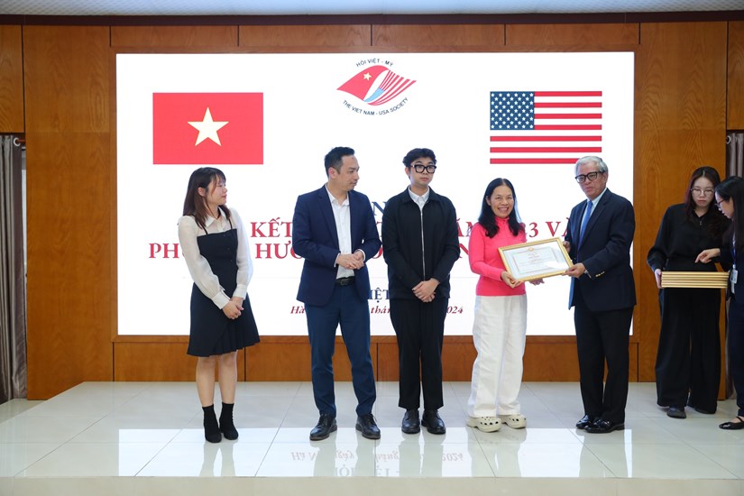 President of the Vietnamese - USA Society Pham Quang Vinh awarded certificates of merit to the most outstanding individuals and units