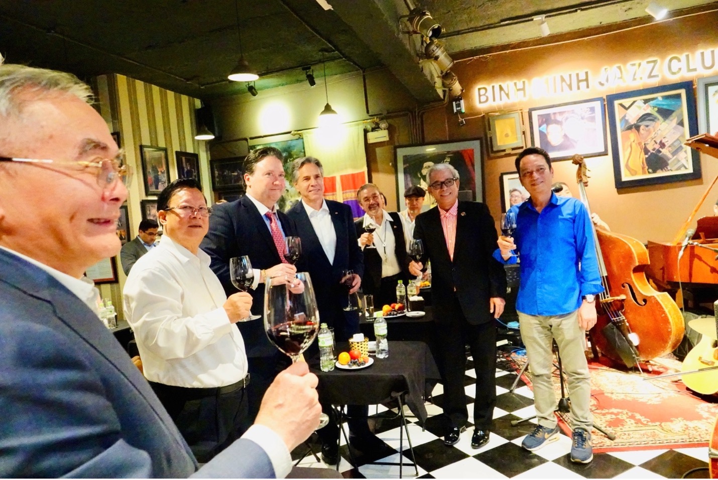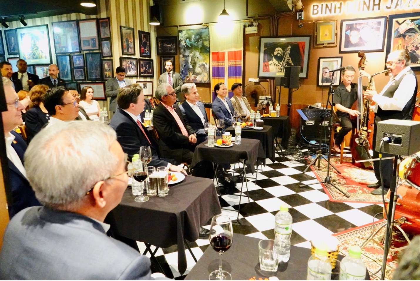 Jazz artist Quyen Van Minh played the song "In the Mood." Earlier, as soon as they entered the club, the Happy Birthday song was played to celebrate Mr. Blinken's birthday.