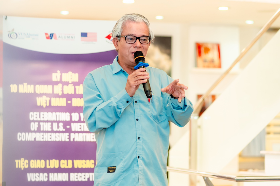 The reception had the presence of Mr. Pham Quang Vinh, President of Vietnam-US Association; Mr. Nguyen Hai Giang, Vice President of Vietnam-US Association; Mr. Bui Van Nghi, General Secretary of Vietnam-US Association, Head of Americas Department, VUFO; Mr. Marc Knapper, United States Ambassador to Vietnam; Ms. Kate Bartlett, Cultural Attaché of the US Embassy in Hanoi; and many other members of the Vietnam-US Association, the US Embassy and VUSAC.